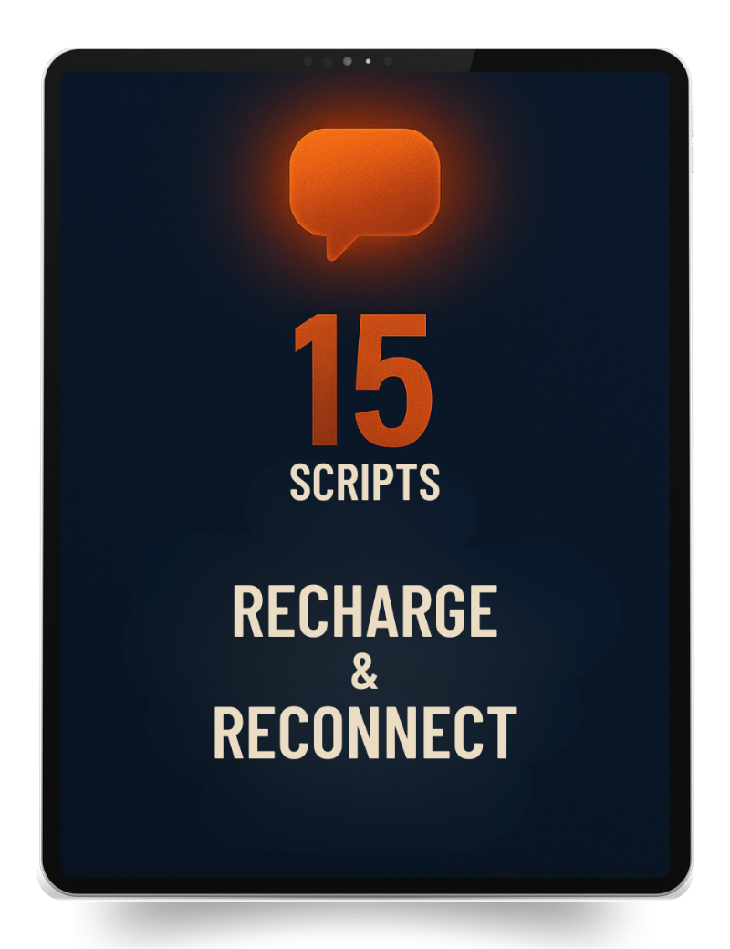 FREE BONUS 3: The Recharge & Reconnect Scripts + 15 exact responses that give you five minutes for yourself without disappointing the kids
